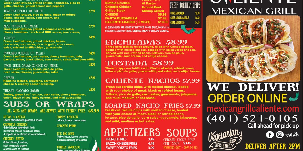 99 FORTIN RD KINGSTON RI 401 284-2816. Caliente mexican food uri Saturday July 30 2022 Edit. Get and Share Taco Coupons for Great Savings.